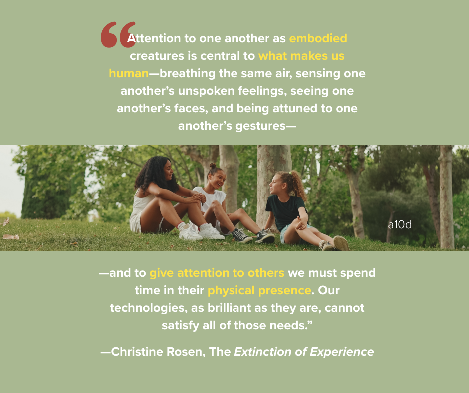 Over the coming months, we’ll be sharing more about a program designed for kids to learn about and command their attention and build essential human skills. In the meantime, we’re publishing new insights for parents and educators via our a10d Substack. It’s is a place to share what we’re learning with you and others along this journey. Each week, we’ll bring you: